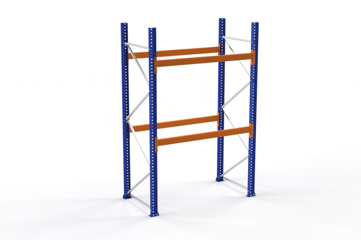 Haibragregal dikmeleri, ön ve arka profillerden oluşur. Bu profiller çapraz ve diyagonal bağlantılarla sabitlenerek yapısal rijitlik kazandırılır. Zemin bağlantısı çelik dübeller ve taban plakalarıyla yapılır. Tüm dikmeler RAL 5010 mavi elektrostatik boya ile korunur. Dikme profilleri farklı yük seviyelerine göre optimize edilir, yüksek taşıma kapasitesiyle uzun yıllar sorunsuz çalışır.