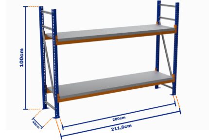 Minirack, Boyalı, 500kg, Yükseklik 1000mm, Genişlik 2116mm, 2 Kat, Kat Arası 595mm, Tavalı, Derinlik 1000mm
