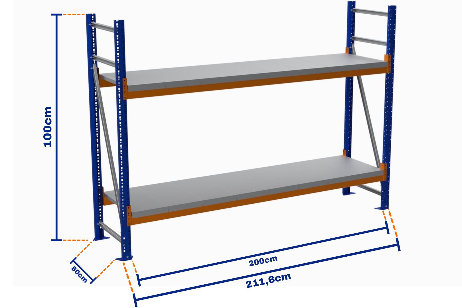 Minirack, Boyalı, 500kg, Yükseklik 1000mm, Genişlik 2116mm, 2 Kat, Kat Arası 595mm, Tavalı, Derinlik 800mm