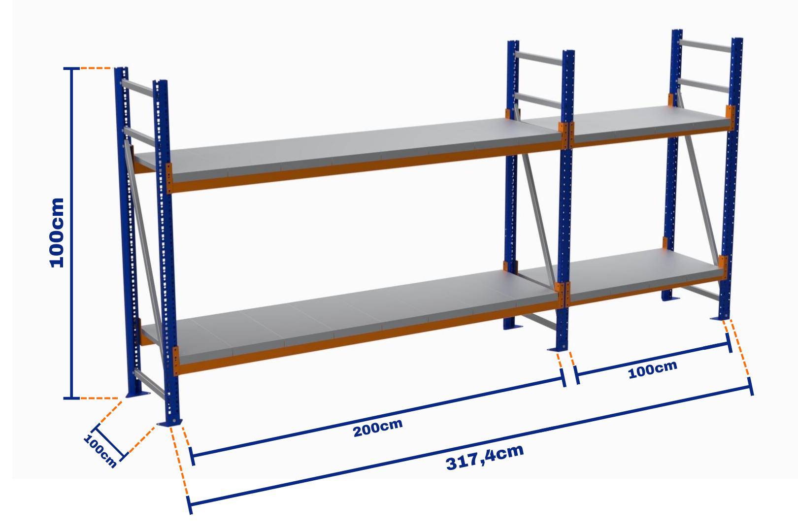 Minirack, Boyalı, 500kg, Yükseklik 1000mm, Genişlik 3174mm, 2 Kat, Kat Arası 595mm, Tavalı, Derinlik 1000mm