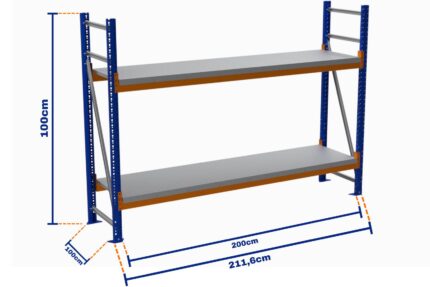 Minirack, Boyalı, 500kg, Yükseklik 1000mm, Genişlik 2116mm, 2 Kat, Kat Arası 700mm, Tavalı, Derinlik 1000mm
