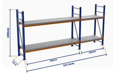 Minirack, Boyalı, 500kg, Yükseklik 1000mm, Genişlik 3174mm, 2 Kat, Kat Arası 595mm, Tavalı, Derinlik 600mm