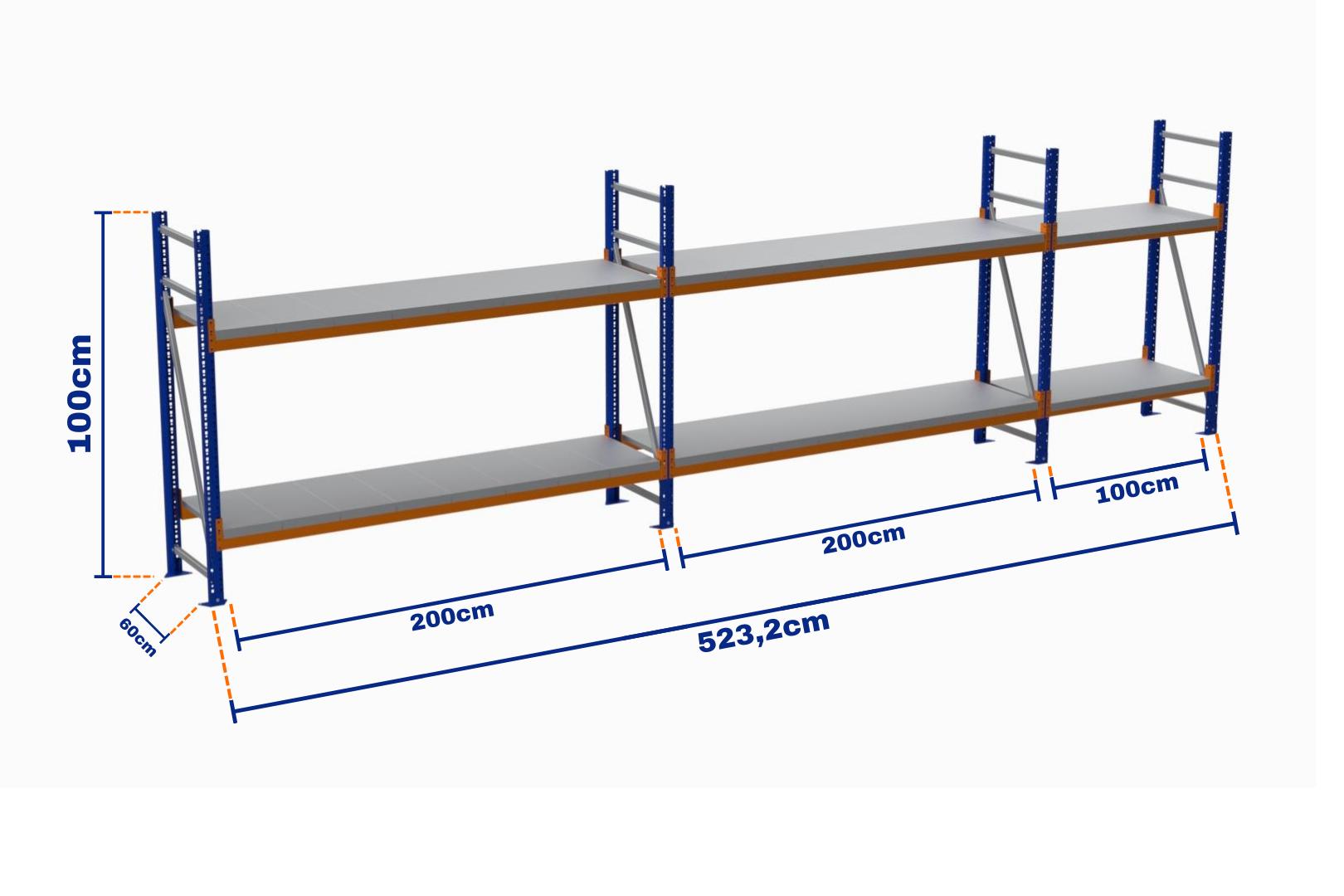 Minirack, Boyalı, 500kg, Yükseklik 1000mm, Genişlik 5232mm, 2 Kat, Kat Arası 595mm, Tavalı, Derinlik 600mm