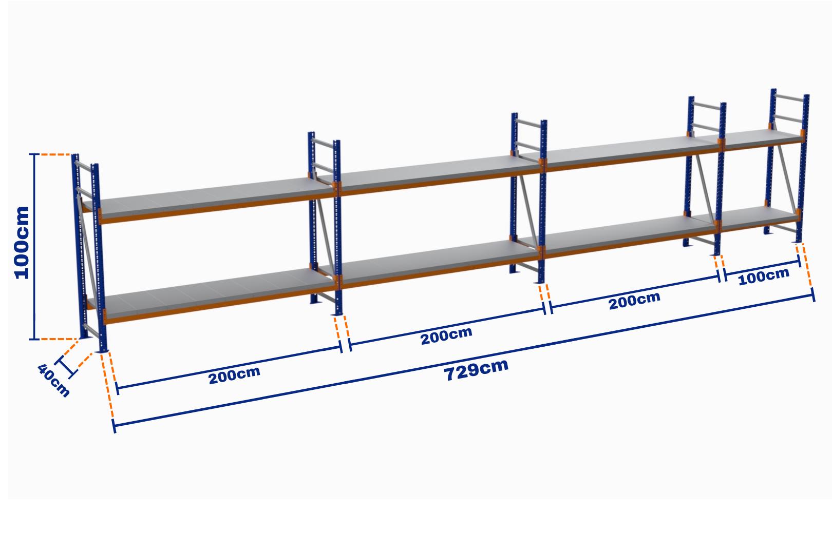Minirack, Boyalı, 500kg, Yükseklik 1000mm, Genişlik 7290mm, 2 Kat, Kat Arası 595mm, Tavalı, Derinlik 400mm