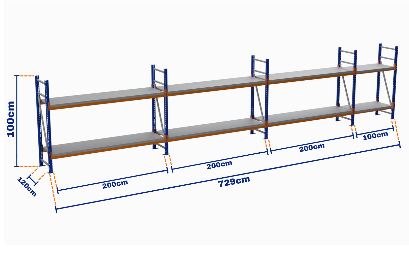 Minirack, Boyalı, 500kg, Yükseklik 1000mm, Genişlik 7290mm, 2 Kat, Kat Arası 700mm, Tavalı, Derinlik 1200mm