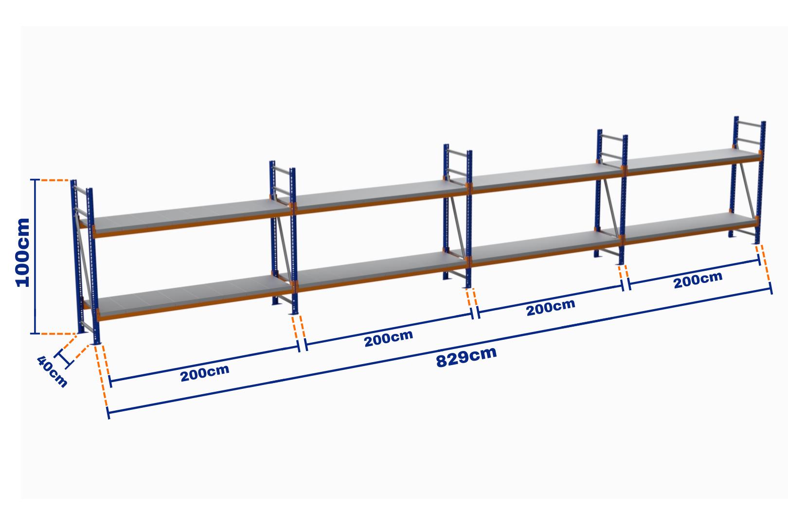 Minirack, Boyalı, 500kg, Yükseklik 1000mm, Genişlik 8290mm, 2 Kat, Kat Arası 700mm, Tavalı, Derinlik 400mm