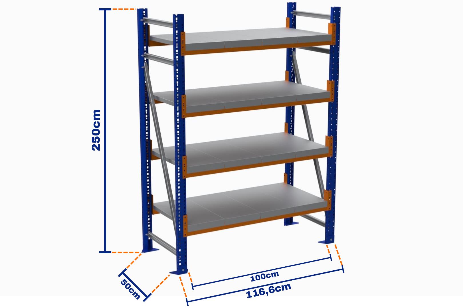 Minirack, Boyalı, 500kg, Yükseklik 2500mm, Genişlik 1116mm, 4 Kat, Kat Arası 700mm, Tavalı, Derinlik 500mm