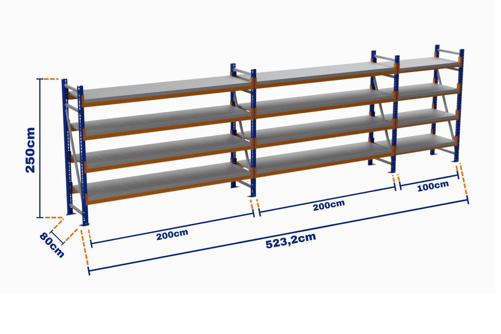 Minirack, Boyalı, 500kg, Yükseklik 2500mm, Genişlik 5232mm, 4 Kat, Kat Arası 700mm, Tavalı, Derinlik 800mm