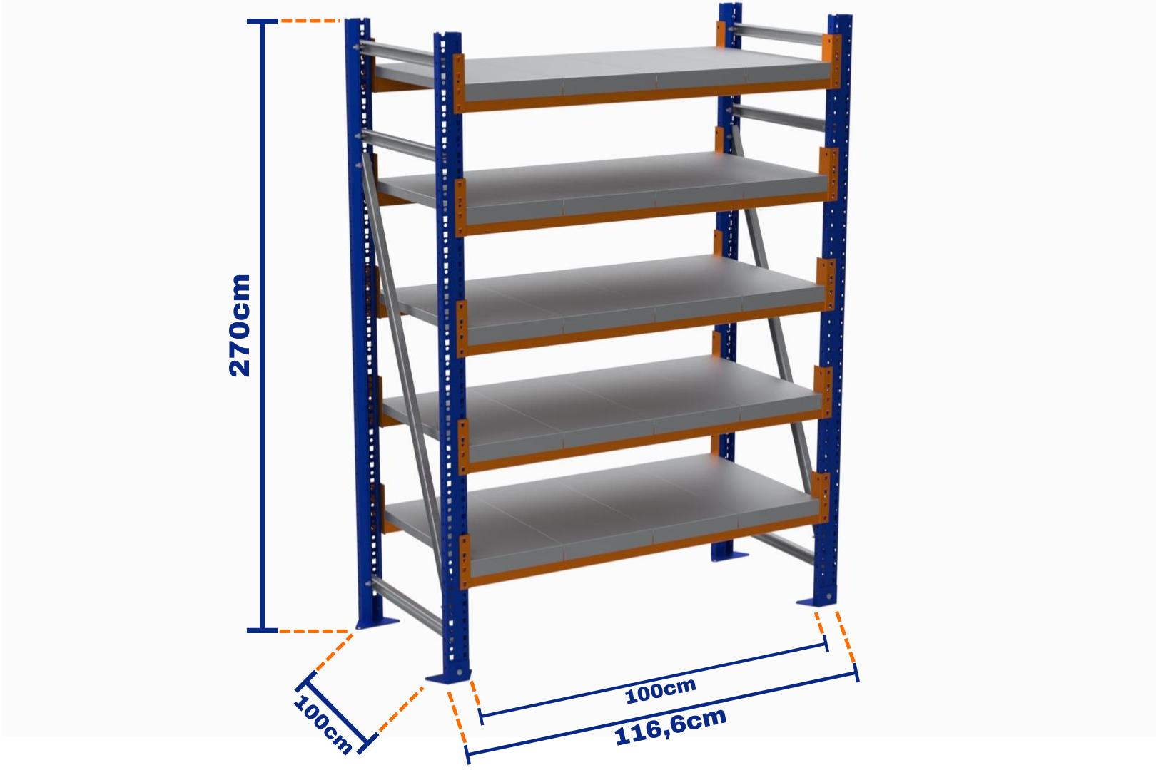 Minirack, Boyalı, 500kg, Yükseklik 2700mm, Genişlik 1116mm, 5 Kat, Kat Arası 595mm, Tavalı, Derinlik 1000mm