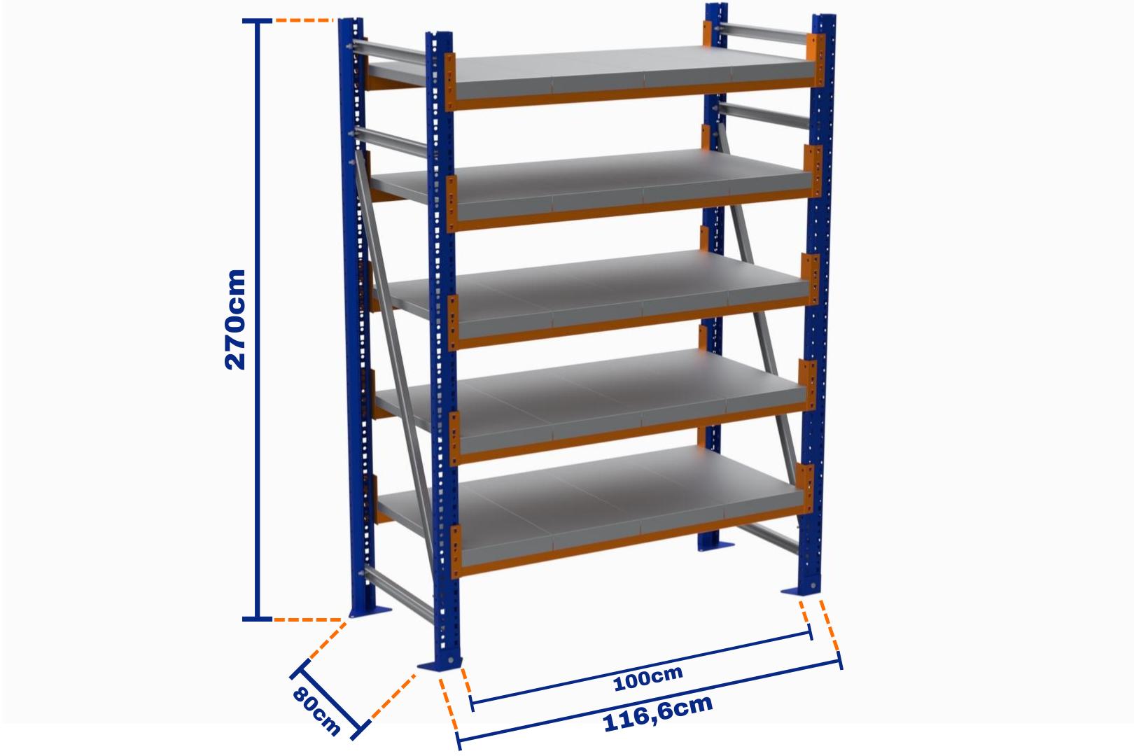 Minirack, Boyalı, 500kg, Yükseklik 2700mm, Genişlik 1116mm, 5 Kat, Kat Arası 595mm, Tavalı, Derinlik 800mm