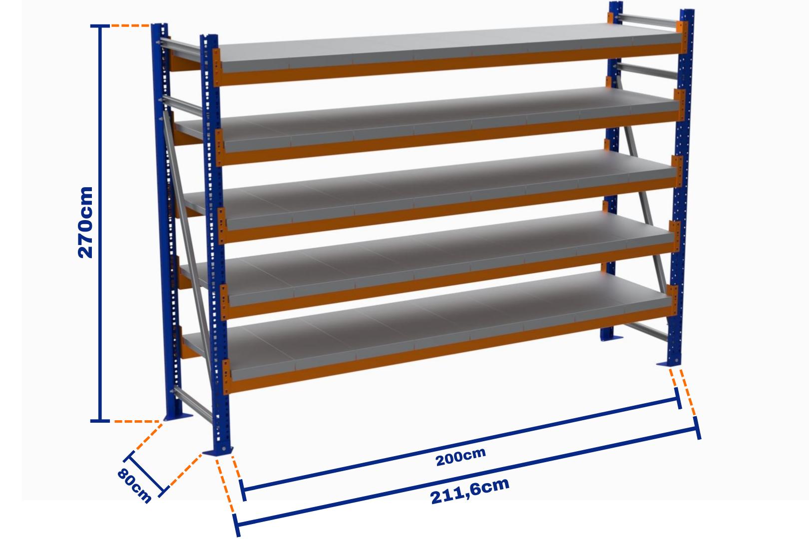 Minirack, Boyalı, 500kg, Yükseklik 2700mm, Genişlik 2116mm, 5 Kat, Kat Arası 595mm, Tavalı, Derinlik 800mm