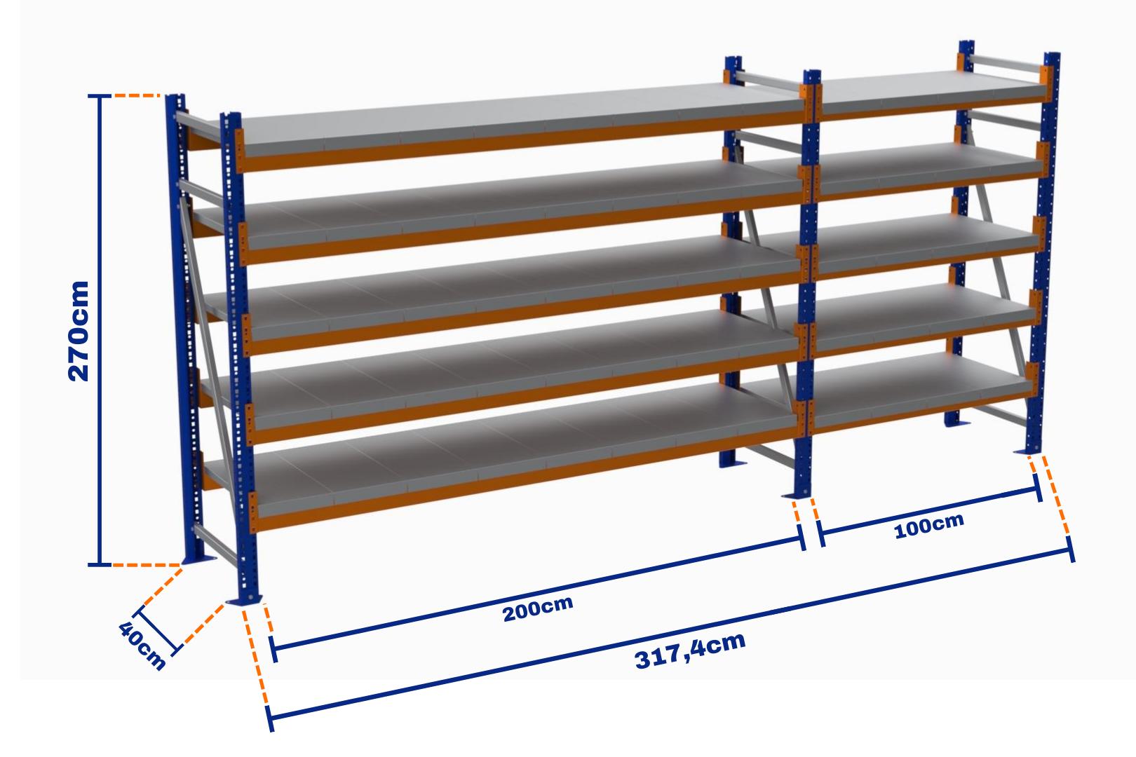 Minirack, Boyalı, 500kg, Yükseklik 2700mm, Genişlik 3174mm, 5 Kat, Kat Arası 595mm, Tavalı, Derinlik 400mm