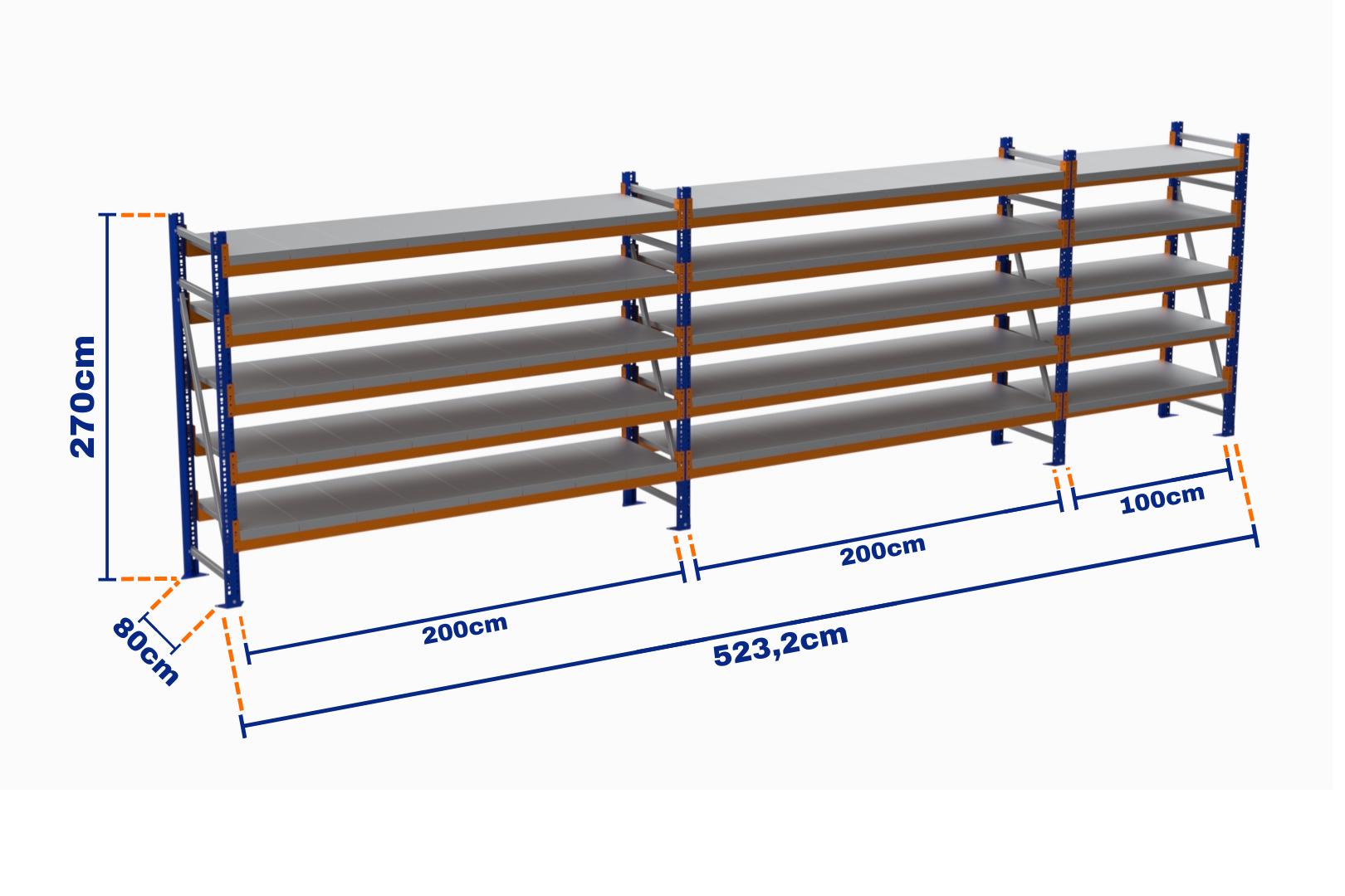 Minirack, Boyalı, 500kg, Yükseklik 2700mm, Genişlik 5232mm, 5 Kat, Kat Arası 595mm, Tavalı, Derinlik 800mm