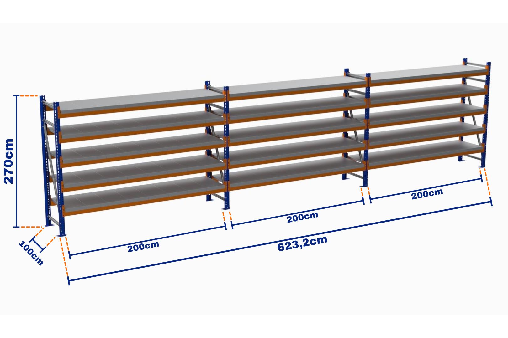 Minirack, Boyalı, 500kg, Yükseklik 2700mm, Genişlik 6232mm, 5 Kat, Kat Arası 595mm, Tavalı, Derinlik 1000mm