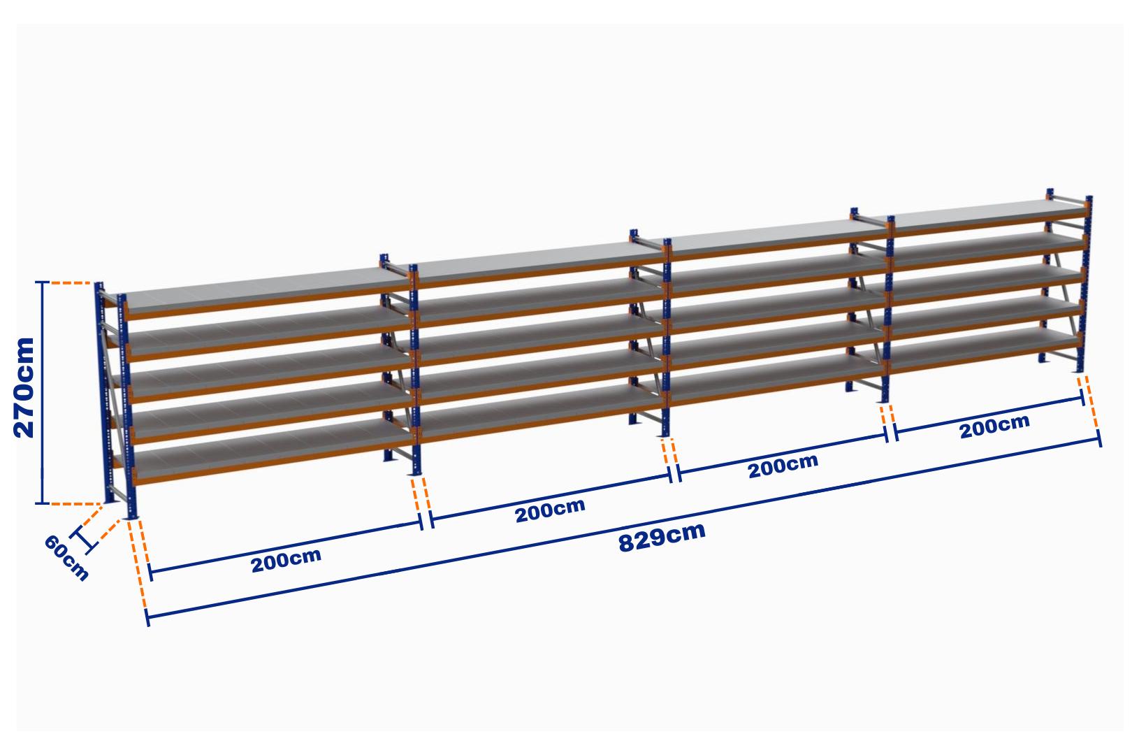 Minirack, Boyalı, 500kg, Yükseklik 2700mm, Genişlik 8290mm, 5 Kat, Kat Arası 595mm, Tavalı, Derinlik 600mm