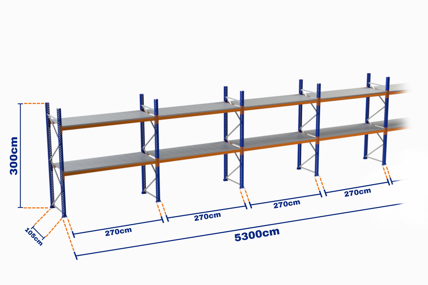 Paletli Raf, Boyalı, 1000kg, Yükseklik 3000mm, Genişlik 53000mm, Z+2, Tavalı, Derinlik 1050mm