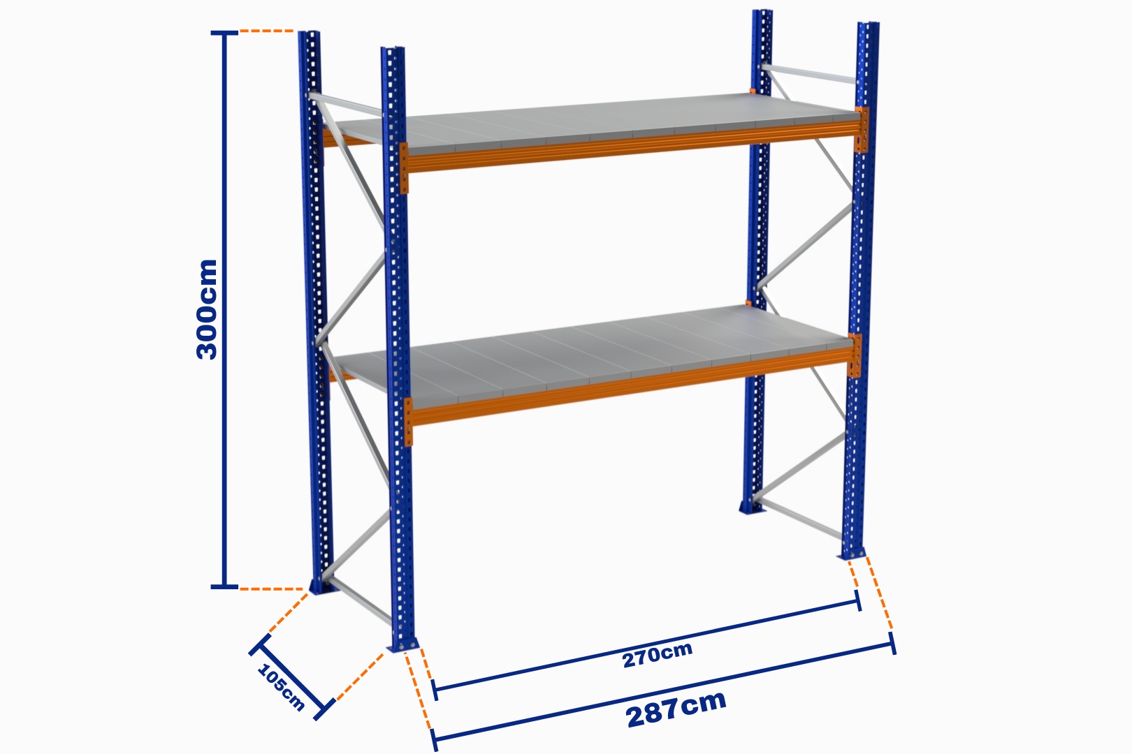 Paletli Raf, Boyalı, 750kg, Yükseklik 3000mm, Genişlik 2870mm, Z+2, Tavalı, Derinlik 1050mm