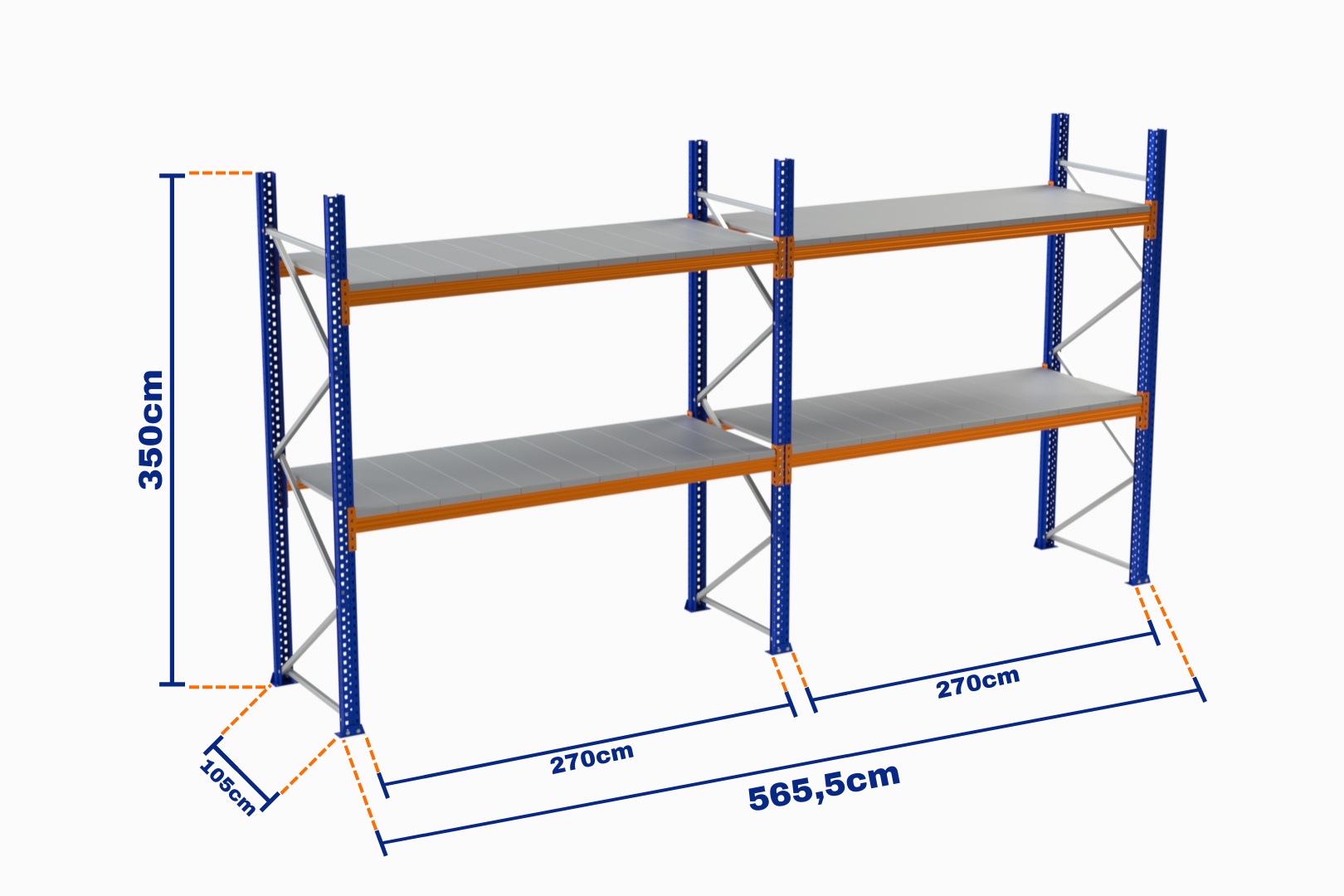 Paletli Raf, Boyalı, 750kg, Yükseklik 3500mm, Genişlik 5655mm, Z+2, Tavalı, Derinlik 1050mm