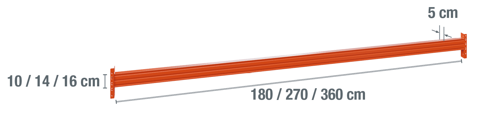 Bölme uzunluğu iki dikme arasındaki açıklığı tanımlar. Haibragregal traversleri 180 cm, 270 cm ve 360 cm ölçülerinde üretilir. Farklı ölçüler birleştirilebilir; sistem modüler yapısı sayesinde kolayca genişletilebilir. Genişlik seçenekleri, farklı palet tiplerine veya ürün boyutlarına göre uyarlanabilir.